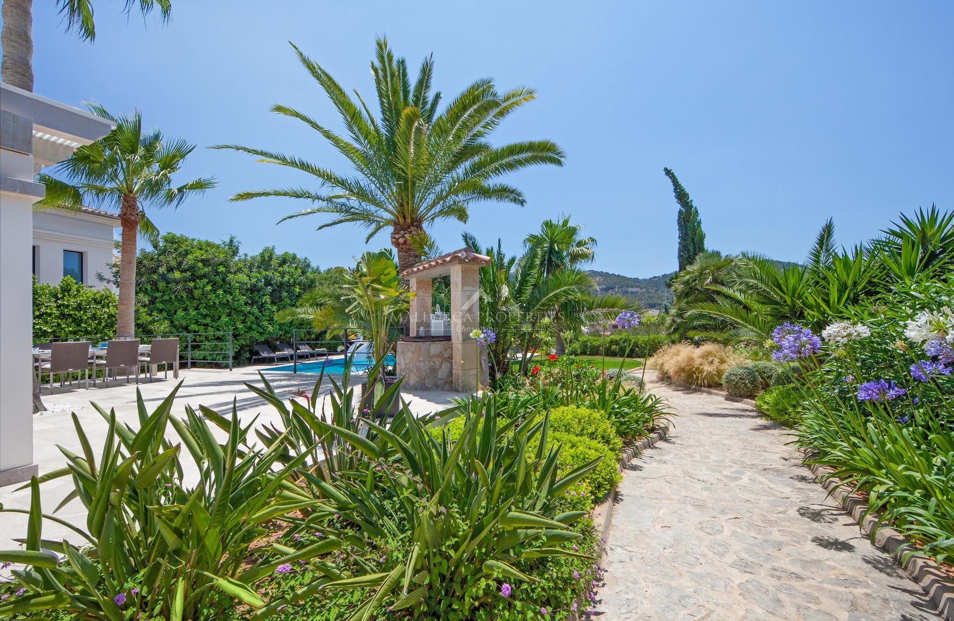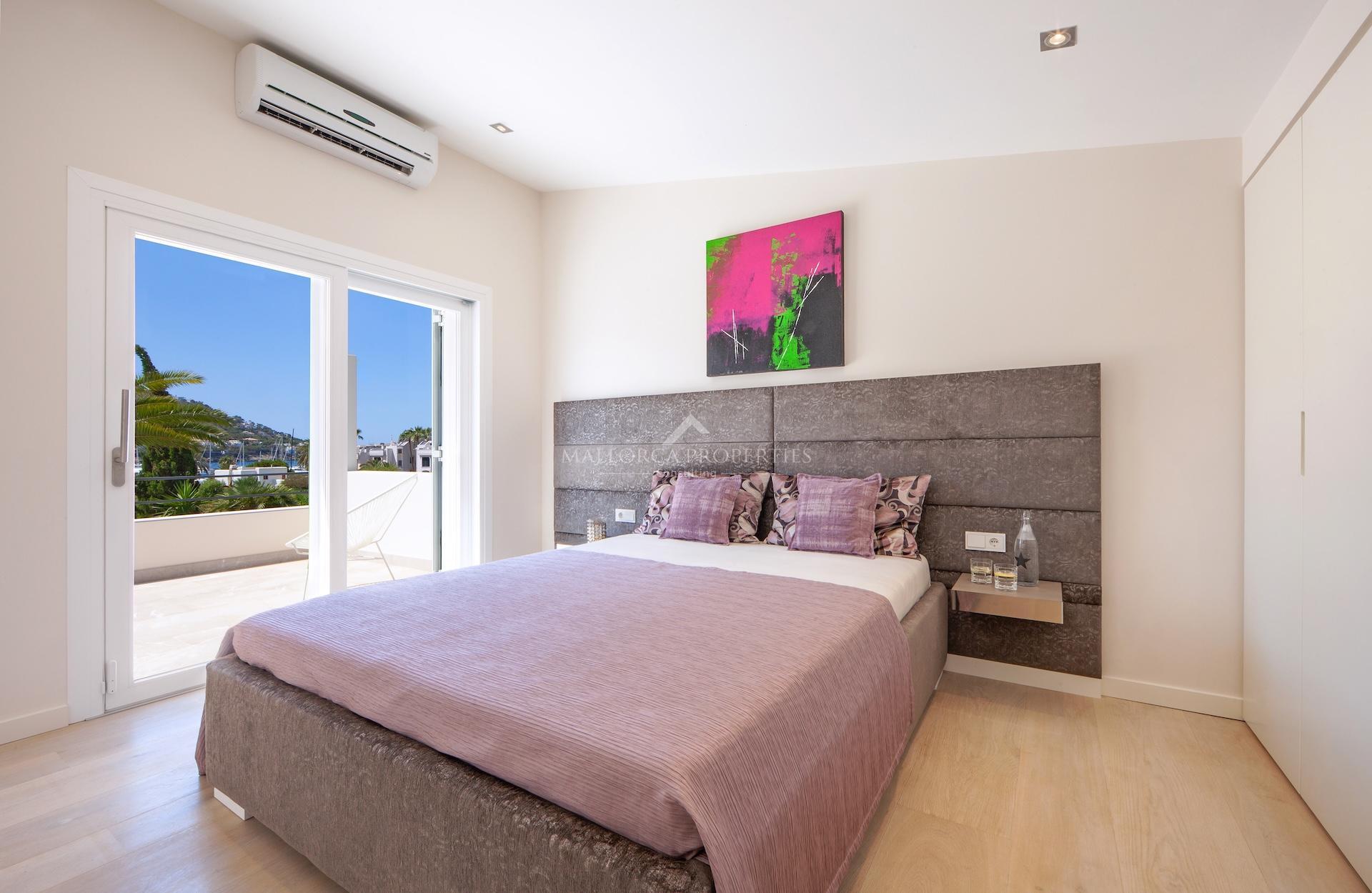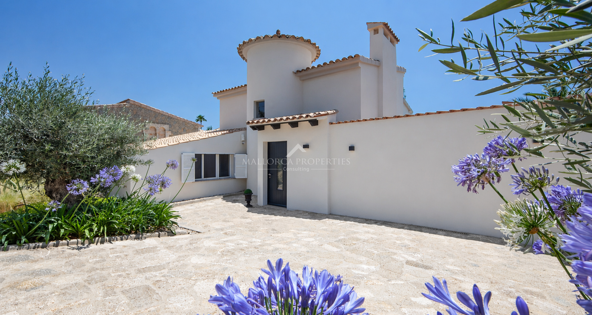 Versteckt am Ende einer ruhigen Sackgasse gelegen, bietet diese wunderschön renovierte Finca ein hohes Maß an Privatsphäre sowie einen herrlichen Blick auf den Hafen von Port Andratx. Die Immobilie verbindet traditionellen Charme mit modernem Design und wurde mit viel Sorgfalt modernisiert, um helle, elegante Wohnräume zu schaffen, die sowohl stilvoll als auch einladend wirken. Auf einem Grundstück von ca. 1.066 m² gelegen, ist die Finca von einem großzügigen, mit Palmen bepflanzten Garten umgeben, der das Leben im Freien auf höchstem Niveau ermöglicht – sei es beim Entspannen im Schatten, beim Empfangen von Gästen oder beim ganzjährigen Genießen des mediterranen Klimas. Im Inneren wurden ca. 154 m² Wohnfläche sorgfältig neu gestaltet und durch zusätzliche ca. 220 m² vielseitig nutzbare Fläche ergänzt, die flexible Möglichkeiten für Stauraum, Freizeit oder individuelle Anpassungen bieten.