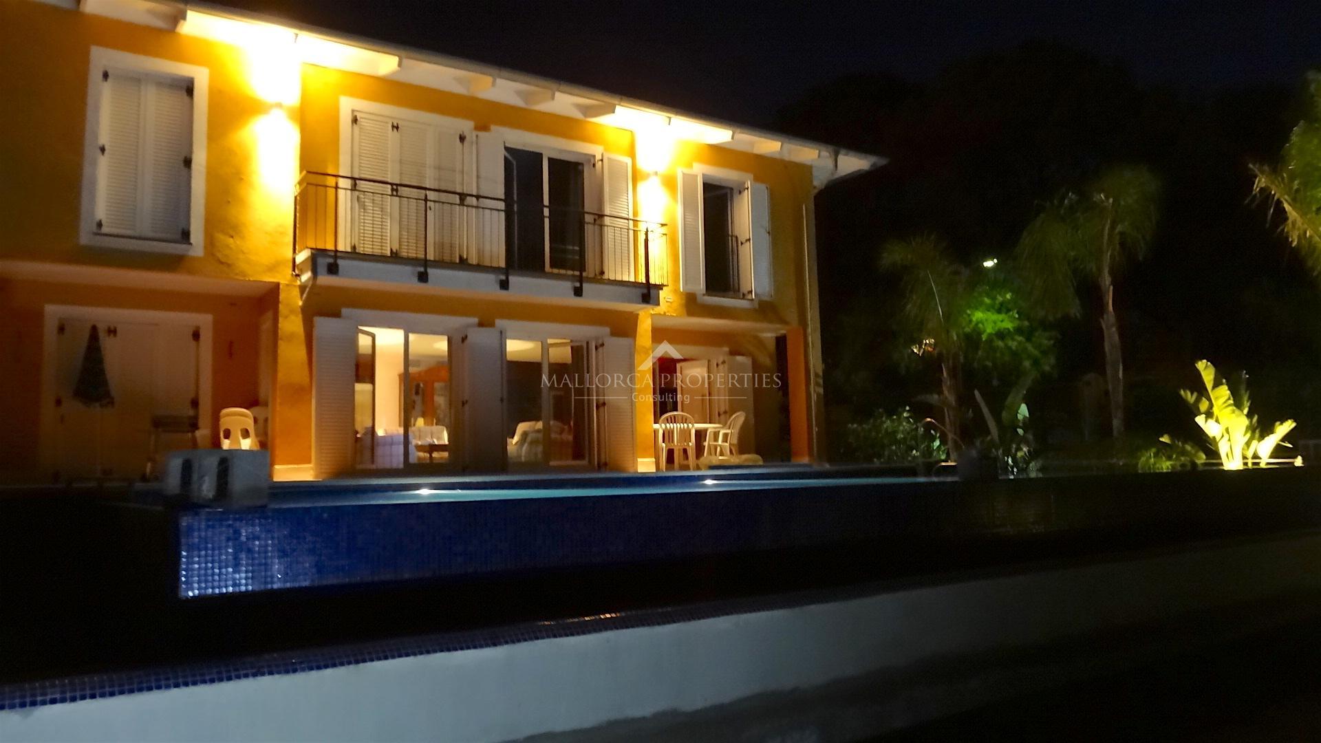 Acogedor chalet de reciente construcción y vistas parciales al mar, situado en una zona residencial de Palmanova, a sólo 5 minutos del puerto deportivo de Portals, diferentes campos de golf, excelentes playas y a tan sólo 15 minutos de la ciudad de Palma. La propiedad de aprox. 397 m² se distribuye en un gran salón-comedor, espaciosa cocina completamente equipada, coladuría, 4 dormitorios, 3 baños (1 en suite), piscina y terrazas.