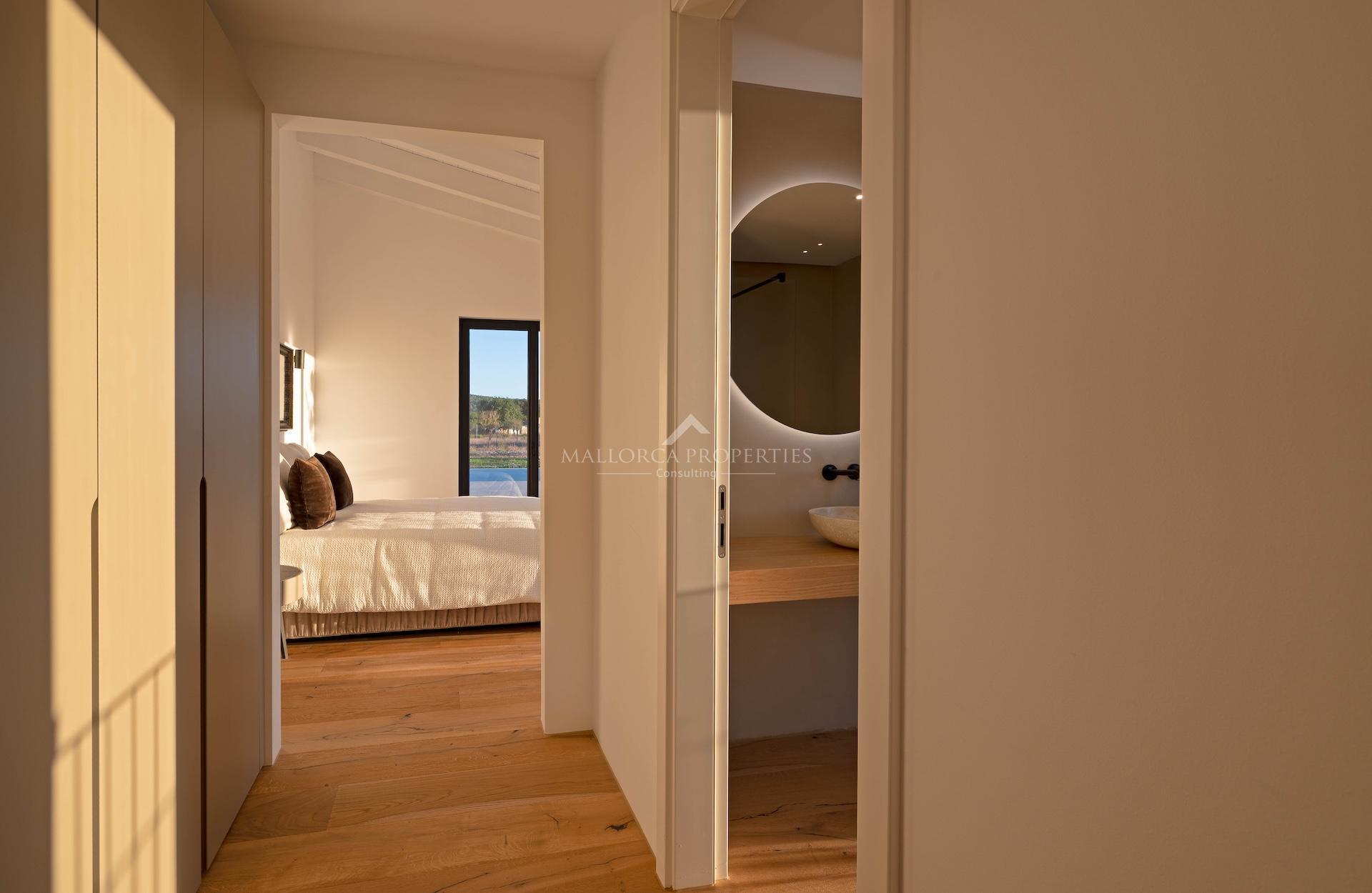 Esta finca ha sido meticulosamente diseñada y construida para cumplir con estándares rigurosos, combinando el encanto rústico mallorquín con una elegancia sofisticada y es altamente eficiente energéticamente. La cocina contemporánea está amueblada y equipada con diseño Poliform/Gaggenau y la propiedad se beneficia de la tecnología de bomba de calor para aire acondicionado y calefacción por suelo radiante. Las características adicionales incluyen una magnífica y acogedora chimenea, suelos de piedra natural, techos con vigas, sistema de control inteligente del hogar, riego automático del jardín y energía solar.