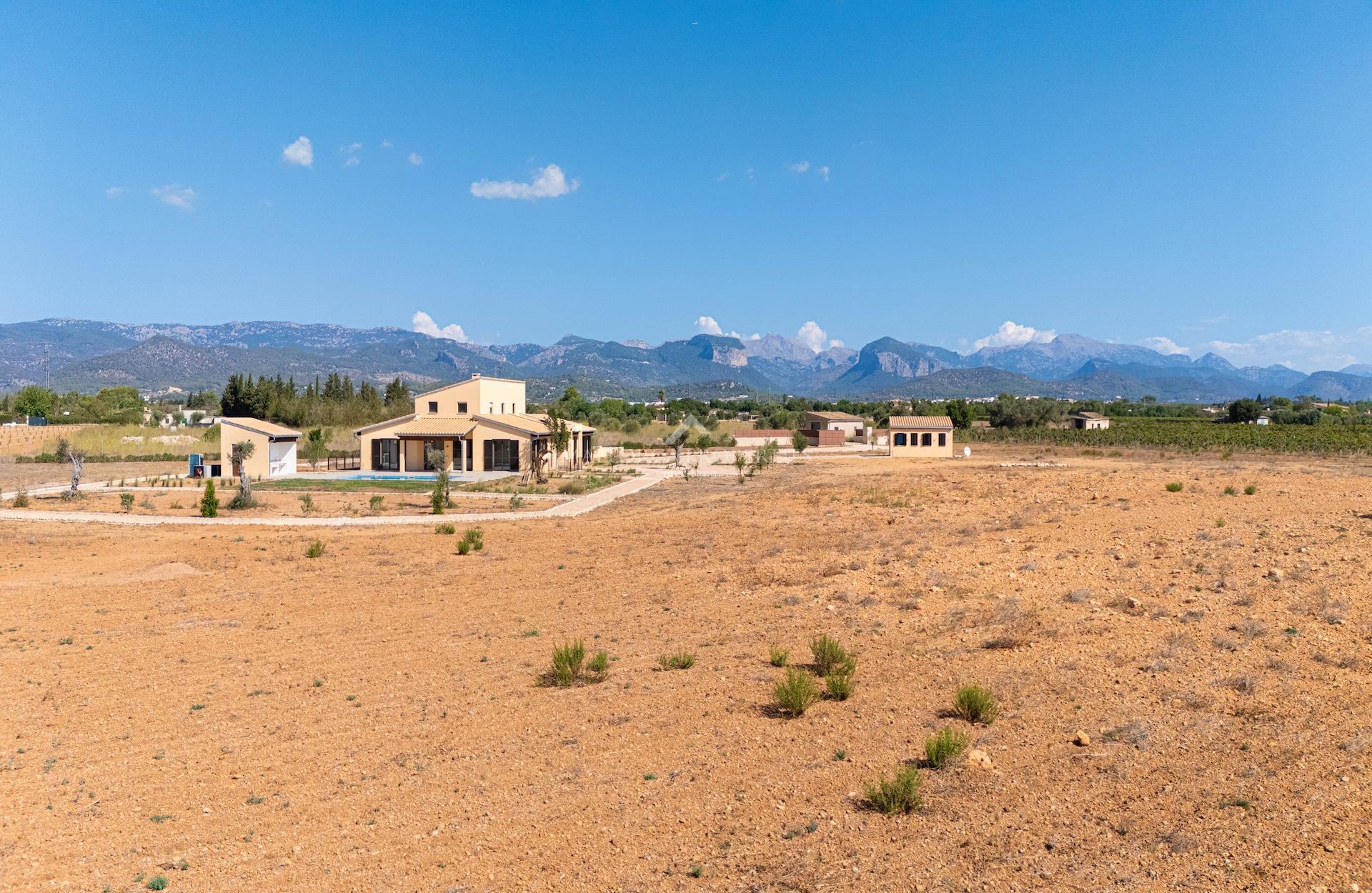 Ubicada en el sereno campo cerca del encantador pueblo de Santa María, esta exquisita finca nueva ofrece impresionantes vistas de las montañas de Tramuntana. La propiedad, cuya finalización está prevista para 2024, se encuentra en un solar aislado de aprox. 17.925 m2, con una superficie total construida de aprox. 645 m2. Dentro de esto, 315 m2 están dedicados a un lujoso espacio habitable, que ofrece comodidad y elegancia incomparables.