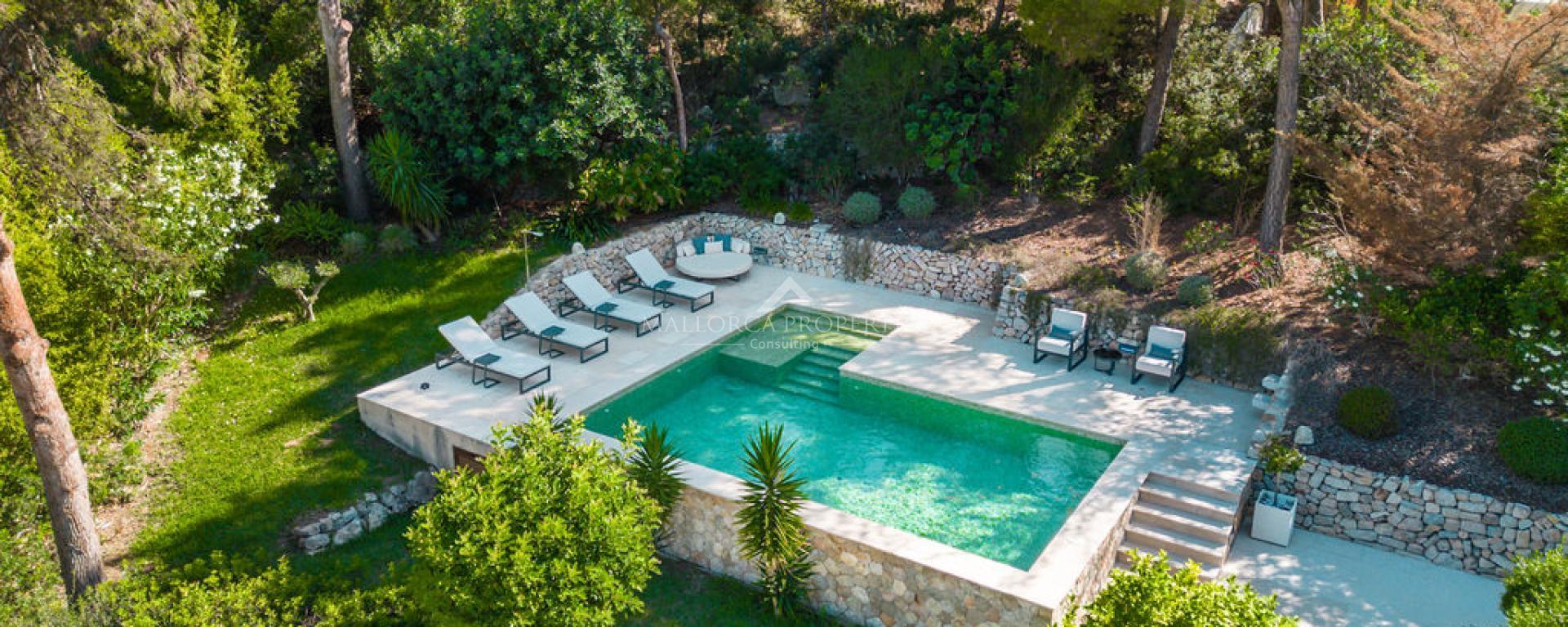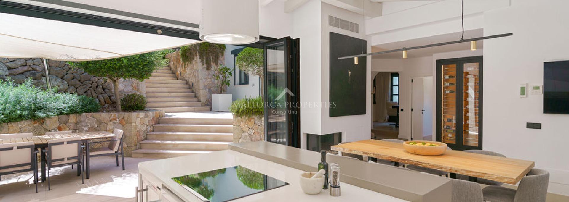 Esta espléndida villa personifica el lujo y la vida moderna y está situada en Cala Moragues, un enclave residencial de lujo en Puerto de Andratx. Los interiores de diseño combinan una cómoda elegancia con la última technología y elementos tradicionales mallorquines.