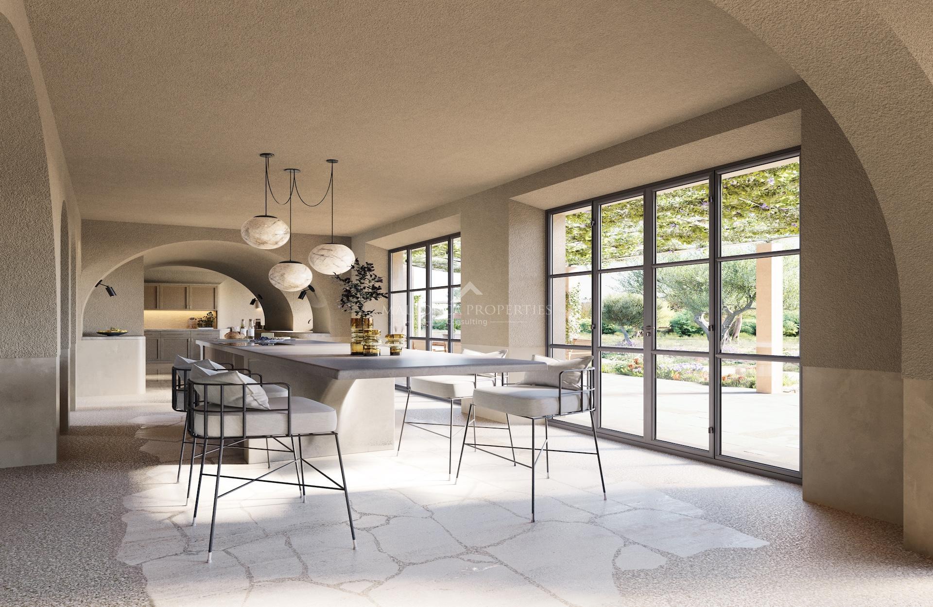 Further highlights of this exceptional property include underfloor central heating, air conditioning and a cosy fireplace in the living room. The finca is characterised by its high ceilings, elegant archways, sleek stone floors and marble surfaces, wooden beams and traditional Mallorcan style shutters. This country residence exudes an atmosphere of refined elegance and subtle sophistication, combining traditional Mallorcan architectural features with the latest technology and all modern comforts to meet the very highest of expectations.