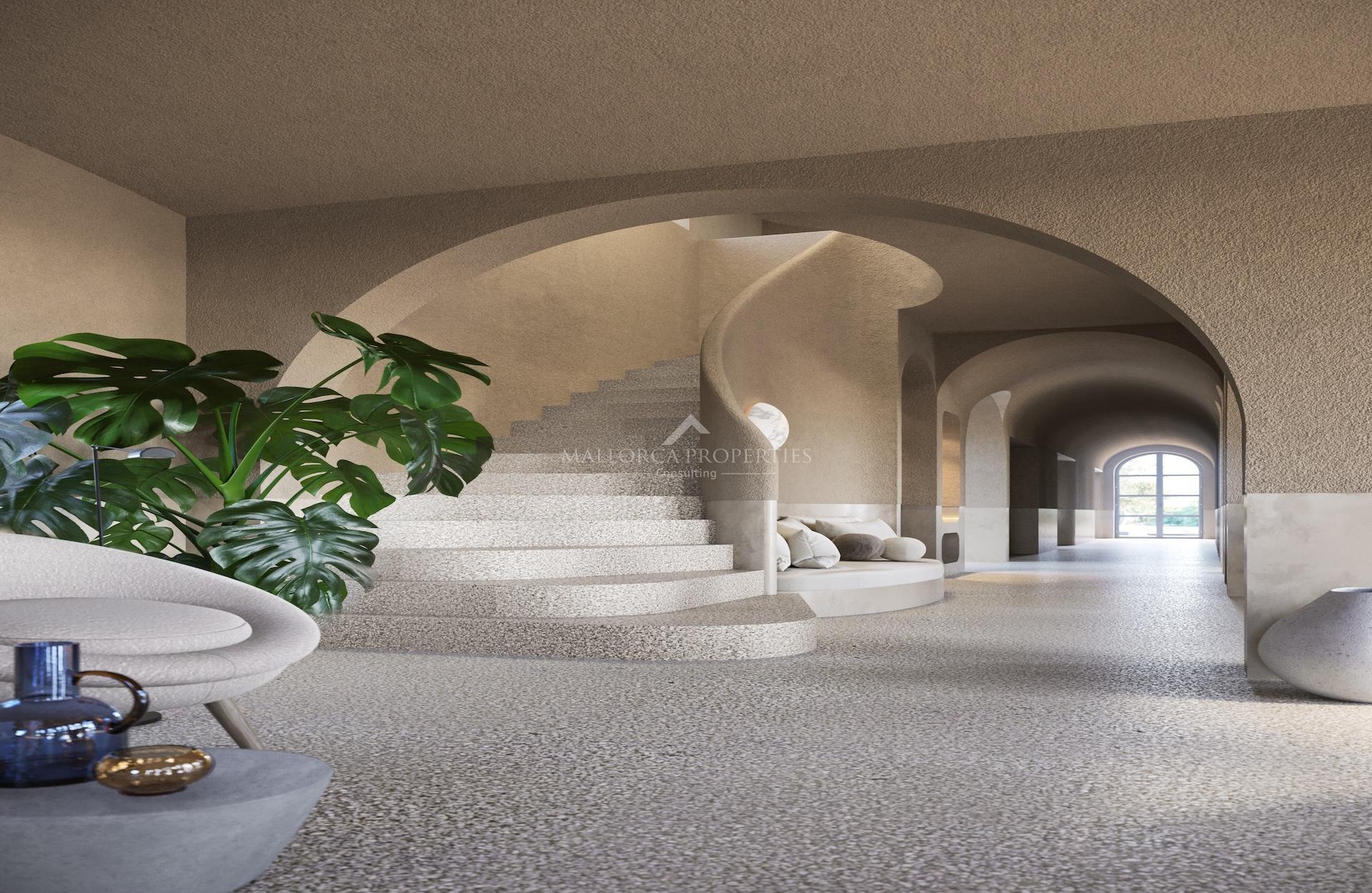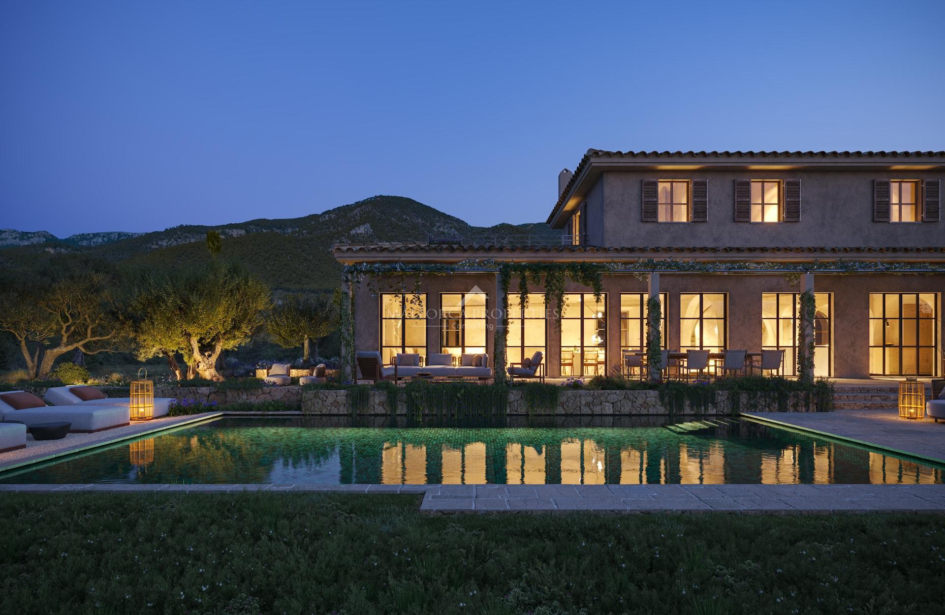 Outstanding new country mansion occupying a privileged rural location on the outskirts of the town of Santa Maria, in the heart of the wine growing region and just 15 km away from Palma. This prestigious finca is currently under construction and set amidst rolling countryside on an expansive plot of 15.845 m² with the breathtaking Tramuntana mountains as a backdrop. The generous living area of approximately 823 m² is distributed over 2 floors plus a basement and the impressive open-plan design creates an abundance of light and space with seamless access between the different living spaces.