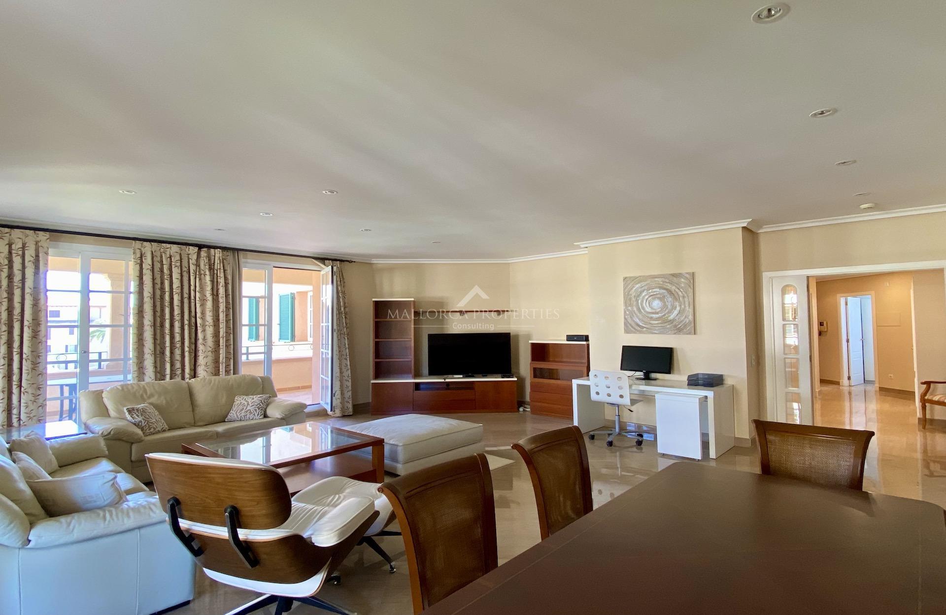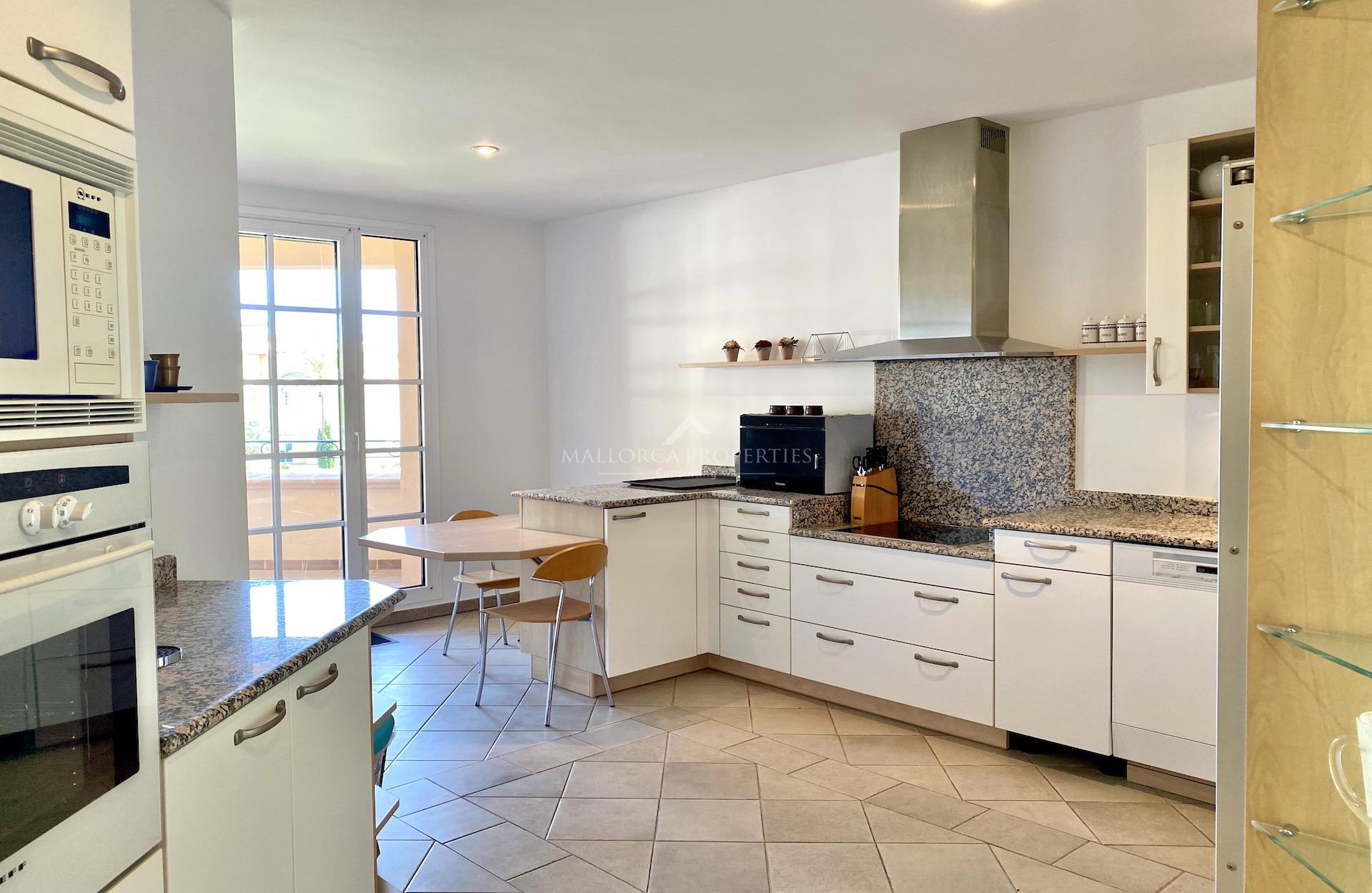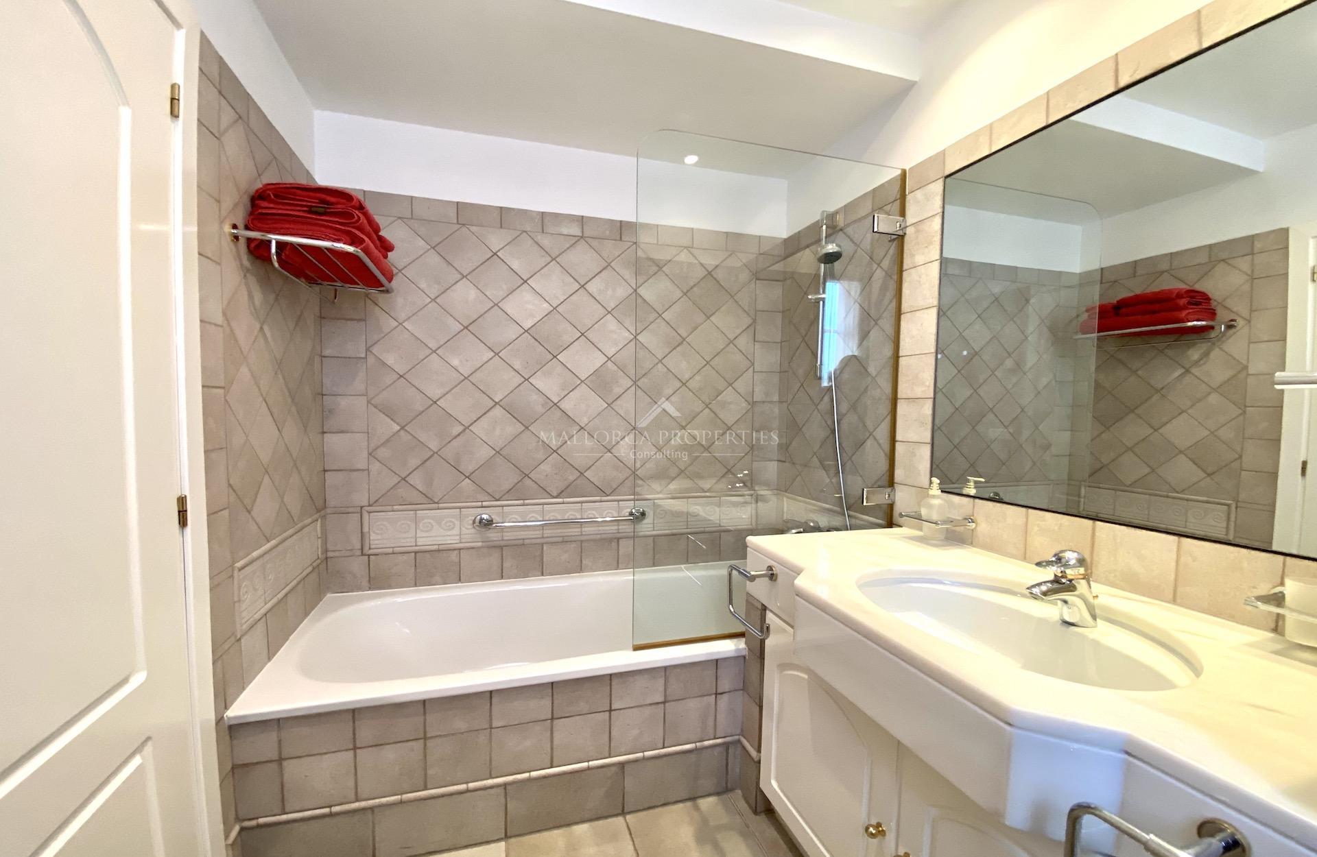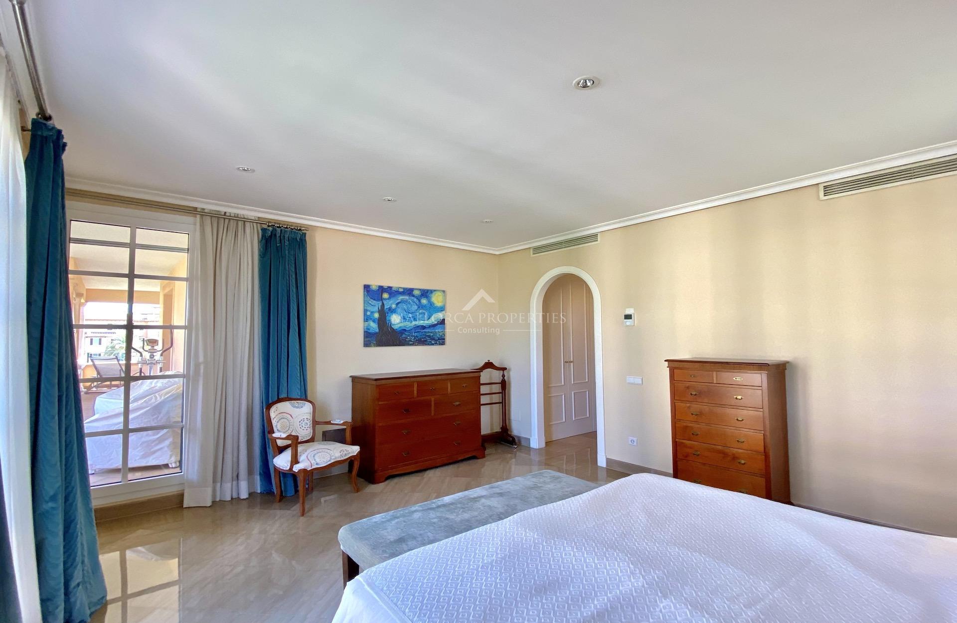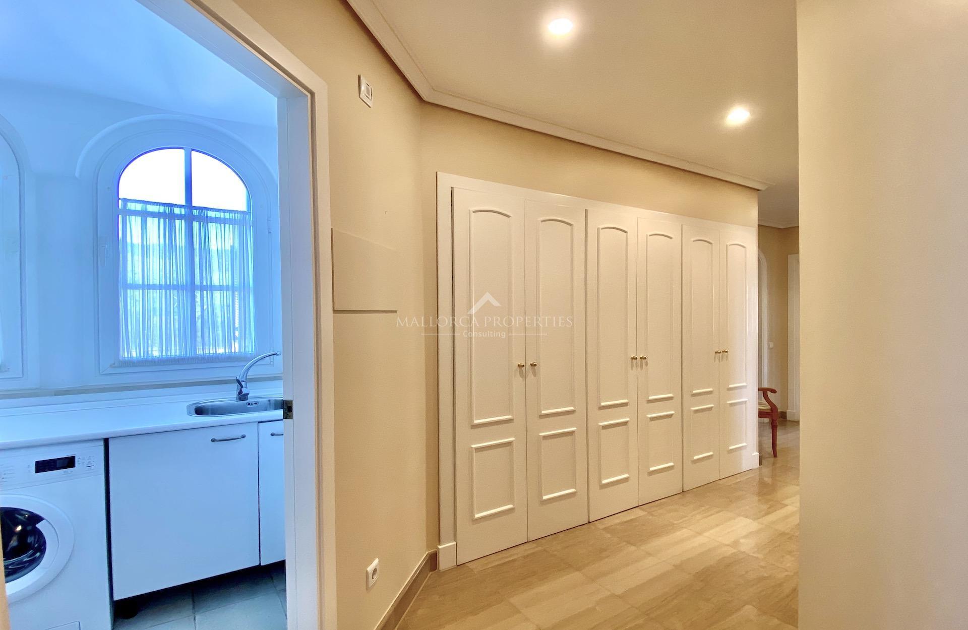 A wonderful apartment in excellent condition set in the prestigious neighborhood of the Mardavall Hotel. The development is located first line to the sea and surrounded by a beautiful big garden with a lake, excellent swimming pool and kids pool. It has direct access to the exclusive Mardavall hotel with it's Spa, restaurants, bar and shops. The close location to Palma, Puerto Portals and commercial center (walking distance) is another advantage of this luxurious development.