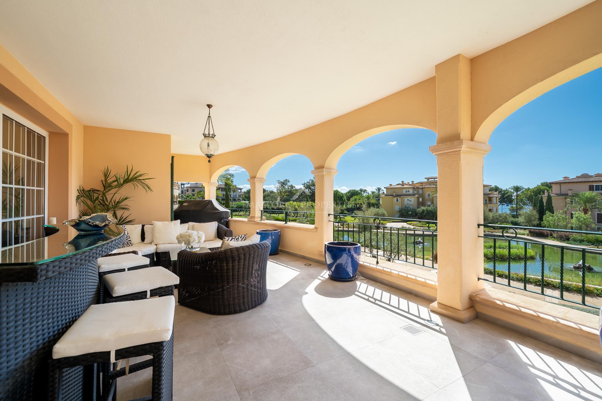 Luxurious apartment in one of the most exclusive, sought-after and secure residential complexes on the southwest coast. Residencias Mardavall is a private gated community located directly by the sea in the area of Puerto Portals - Costa d’en Blanes, adjacent to two prestigious 5-star hotels – The St. Regis Mardavall Mallorca Resort and Mandarin Oriental  – and only a few minutes from the glamorous Puerto Portals marina.